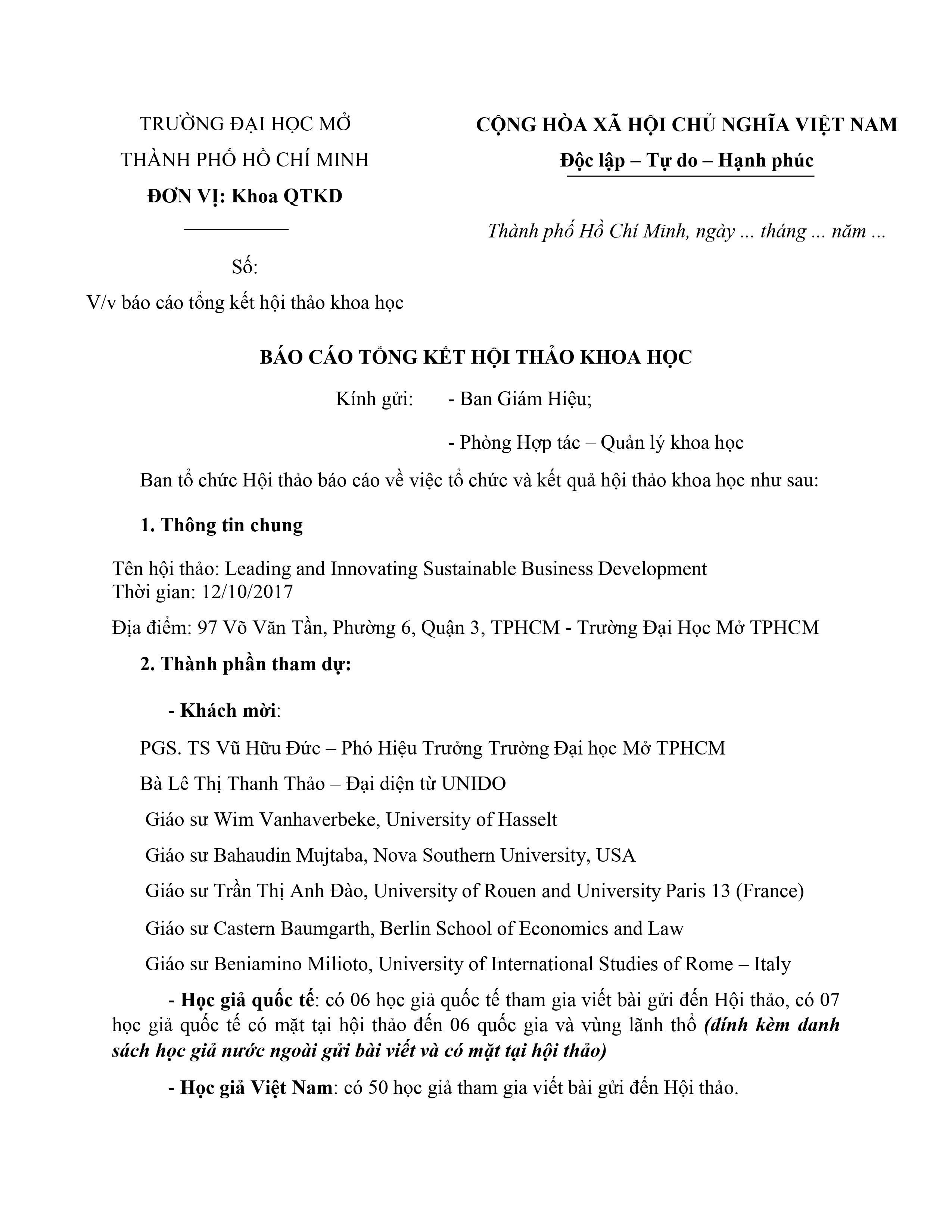 Hội thảo khoa học quốc tế về Kinh doanh lần thứ 3 (ICB 2019): “Phát triển doanh nghiệp bền vững trong kỷ nguyên kết nối”