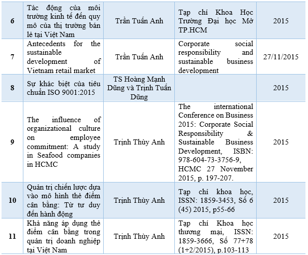 Danh sách bài báo khoa học của giảng viên năm 2017 - 2018 Danh sách các bài báo của Giảng viên khoa QTKD tại hội thảo Sustainable Tourism 2017