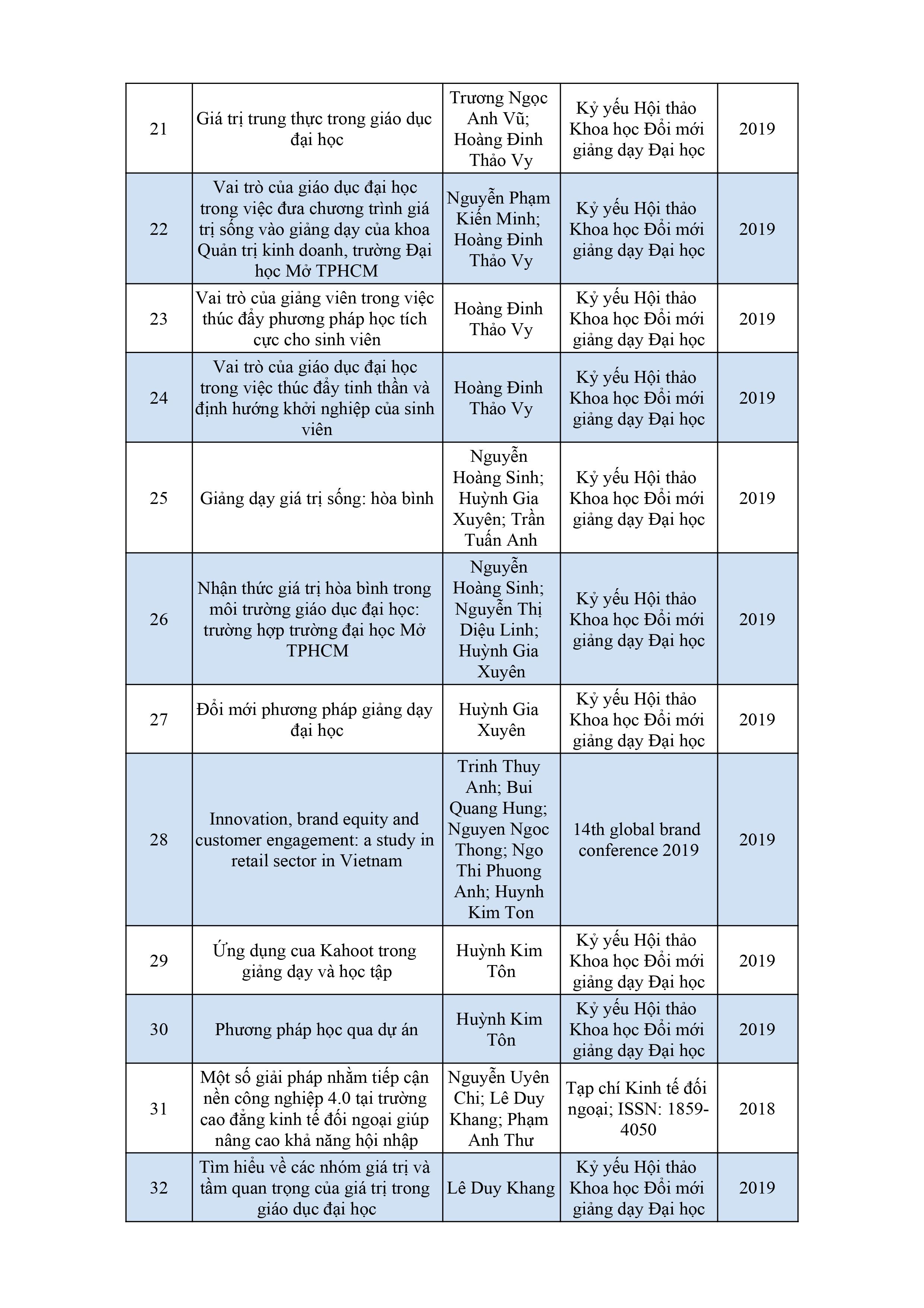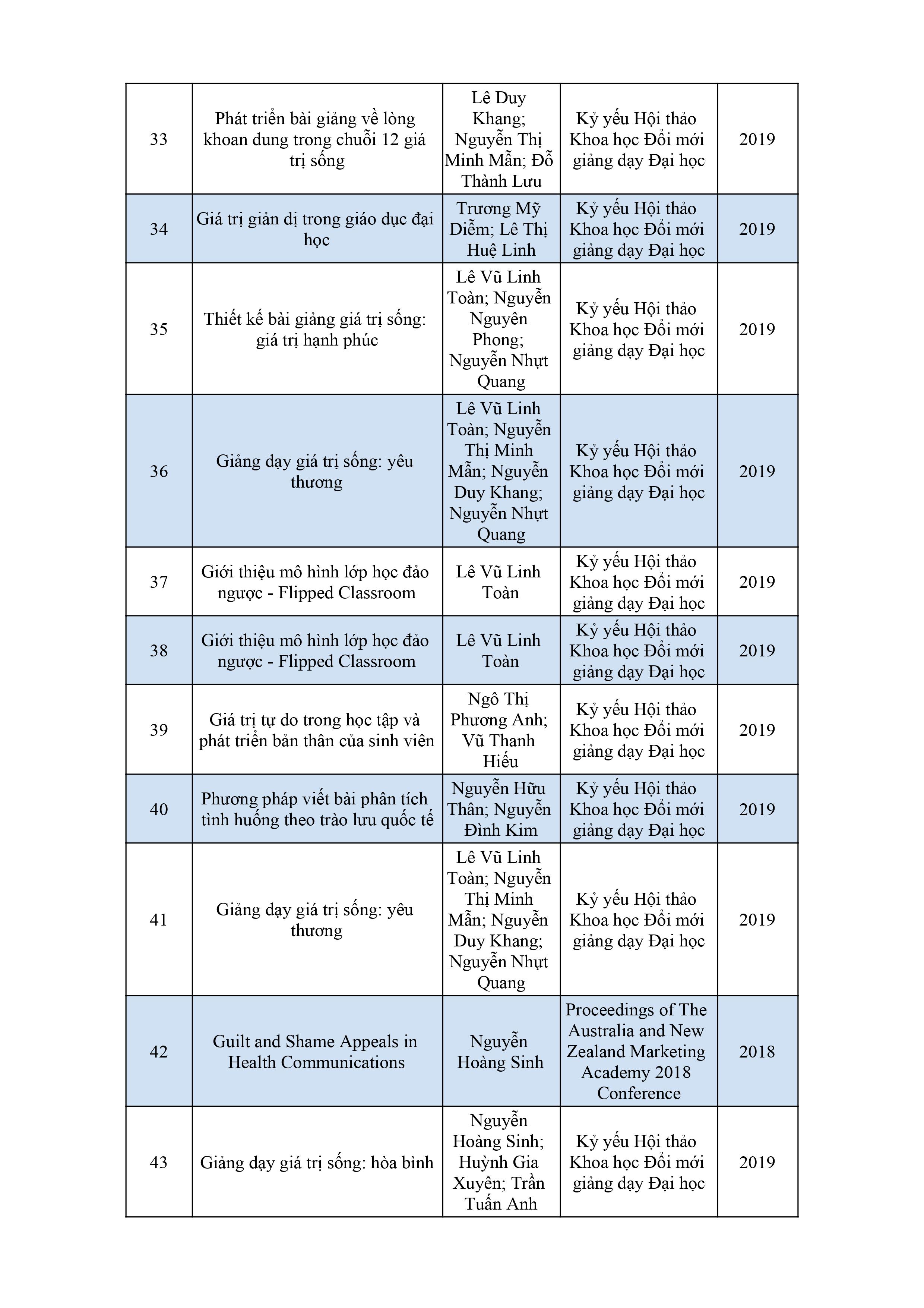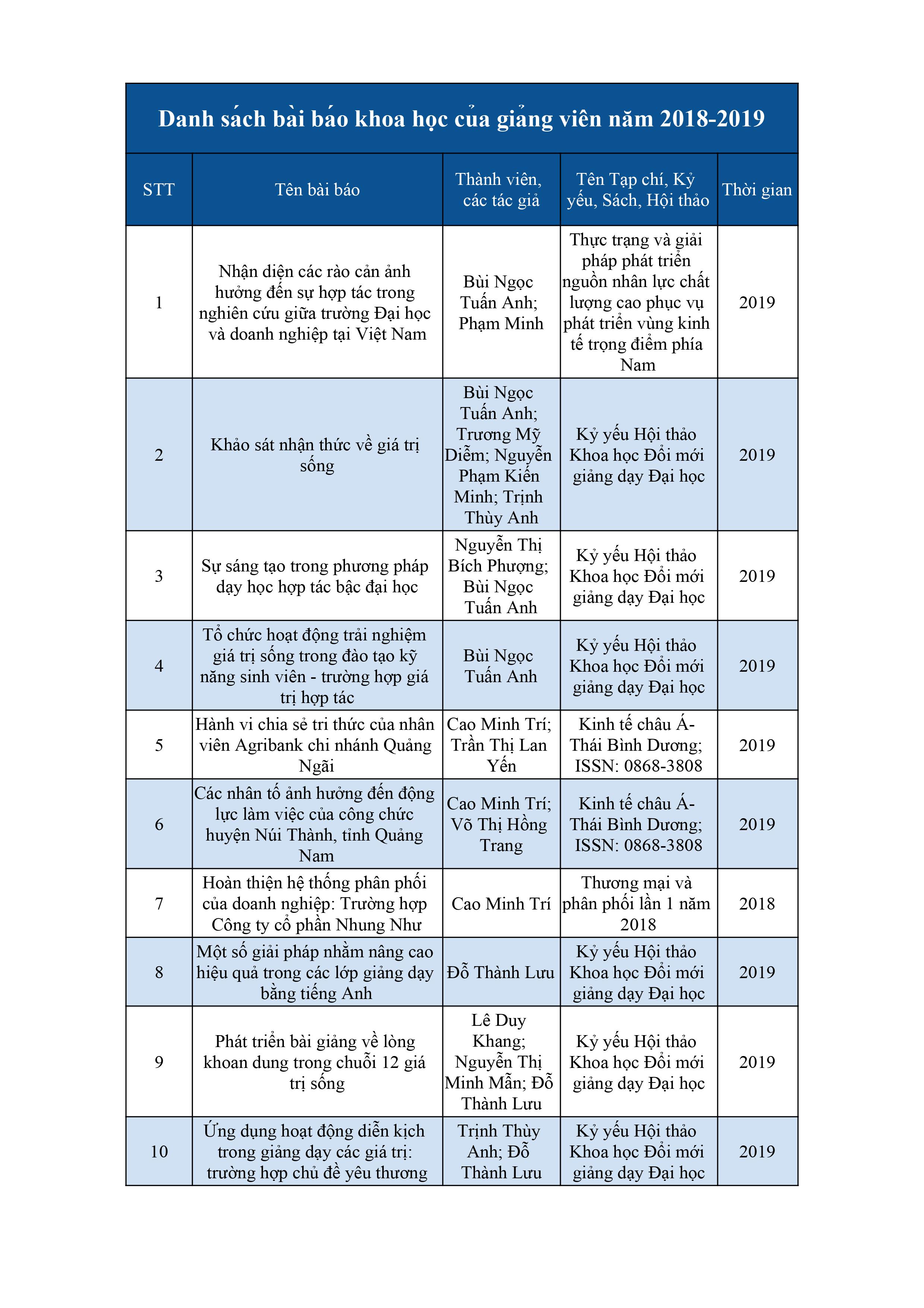 Danh sách bài báo khoa học của giảng viên năm 2017 - 2018