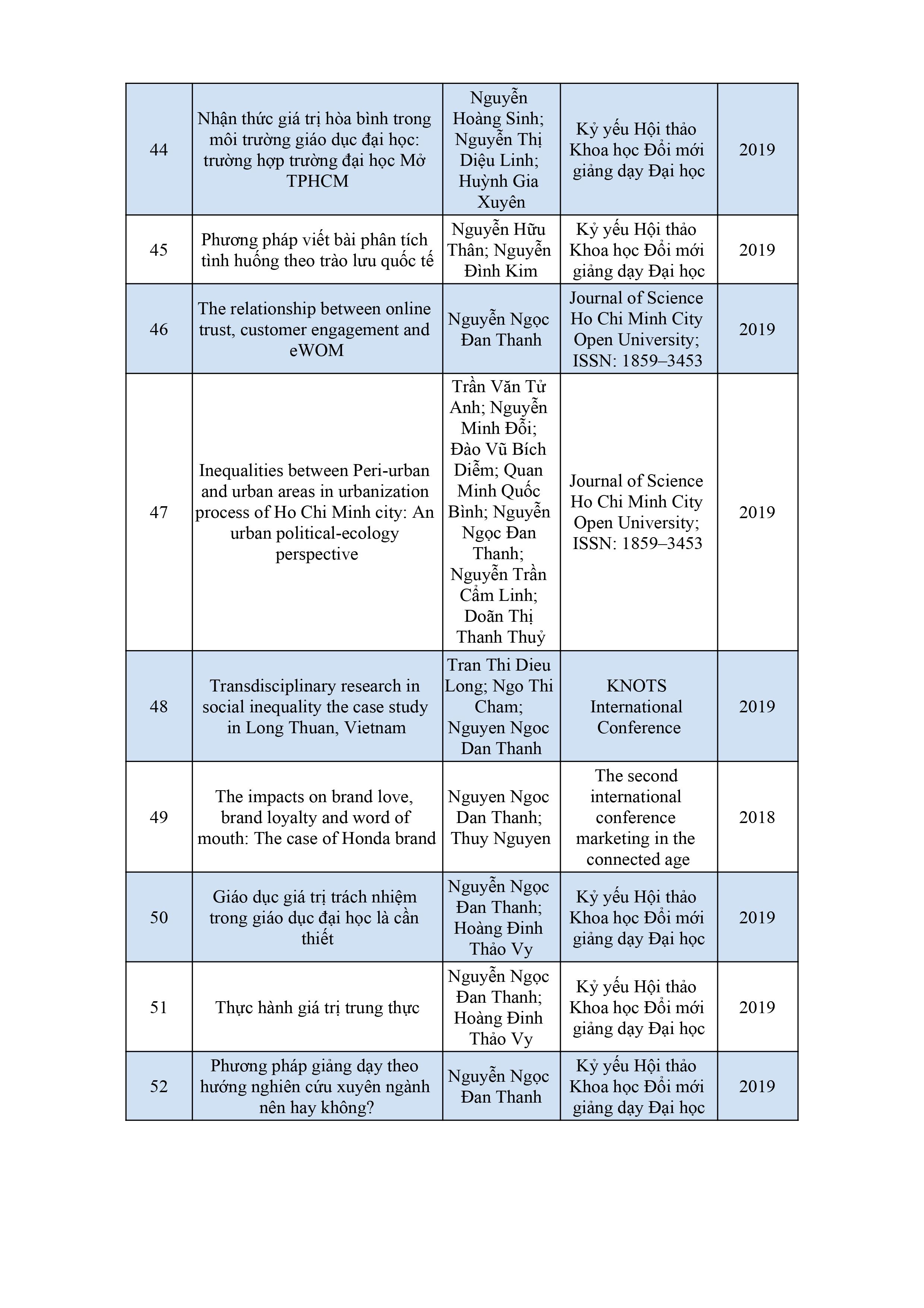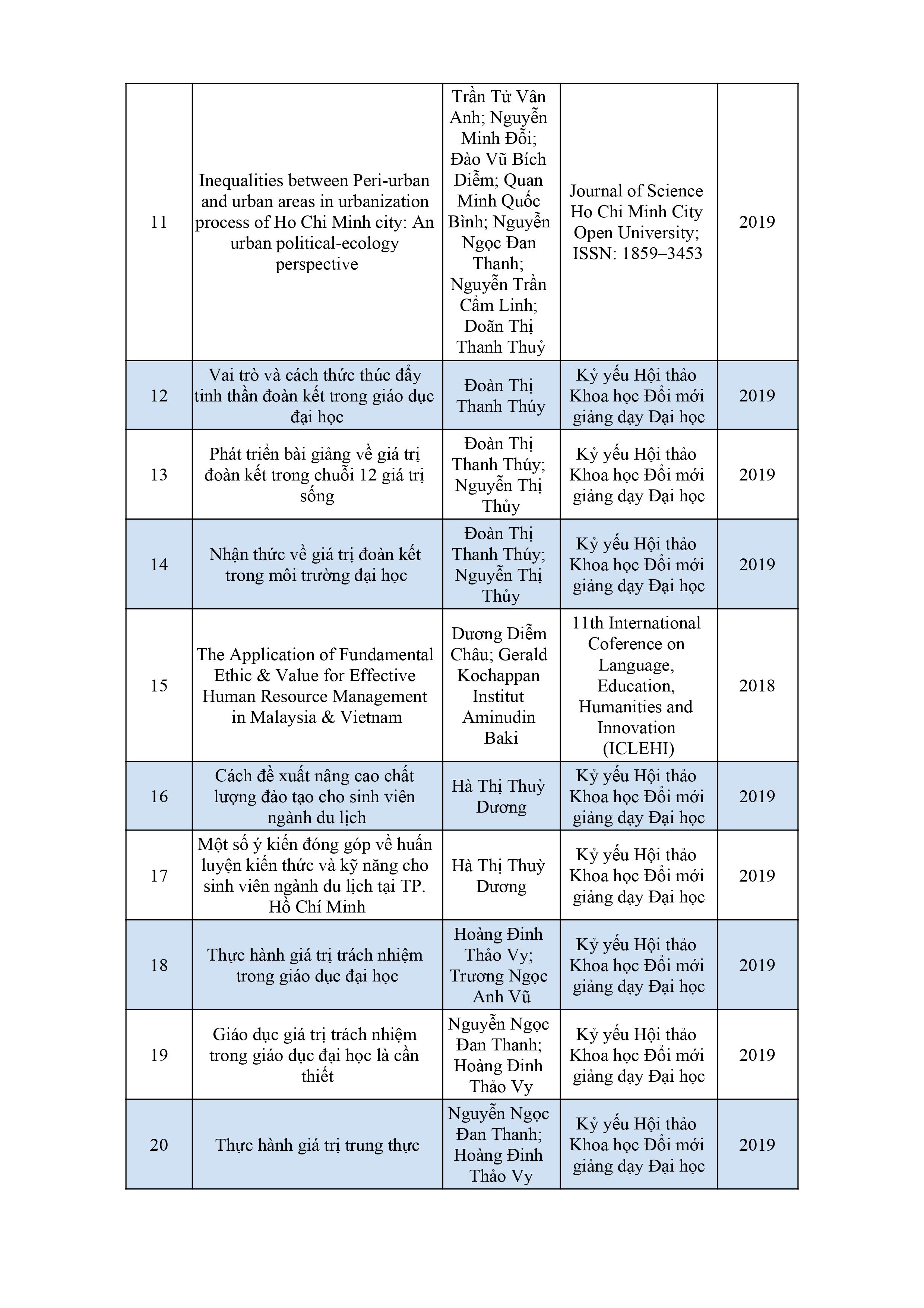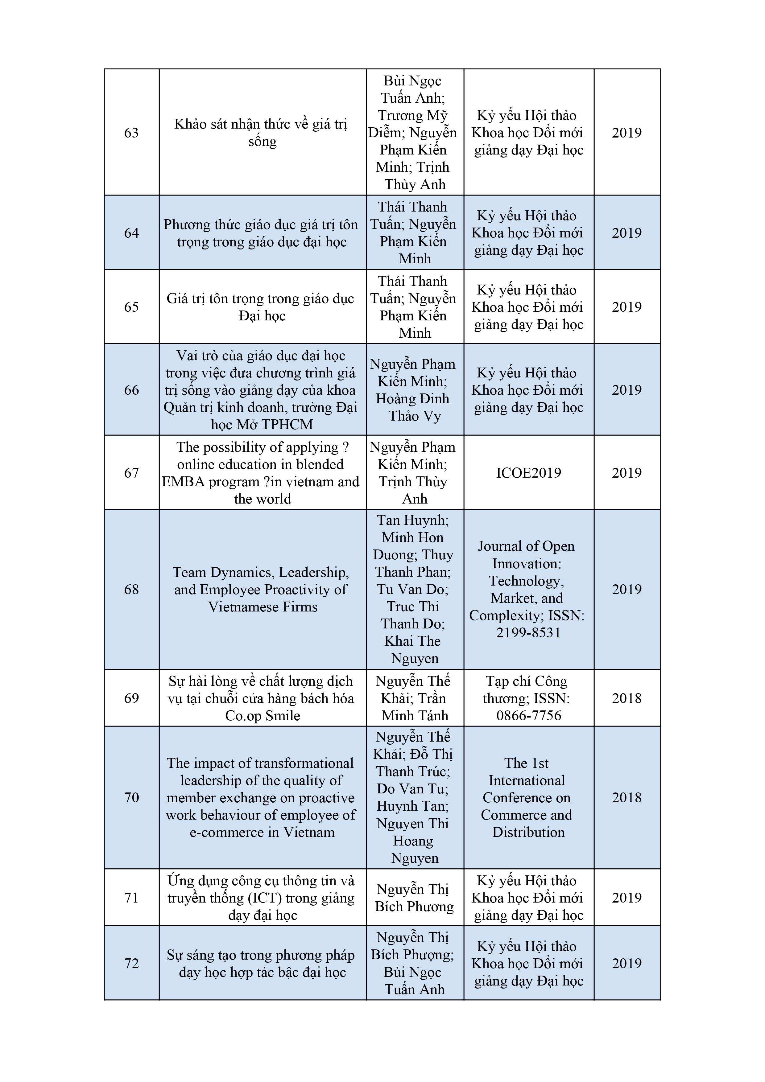 Danh sách bài báo khoa học của giảng viên năm 2017 - 2018