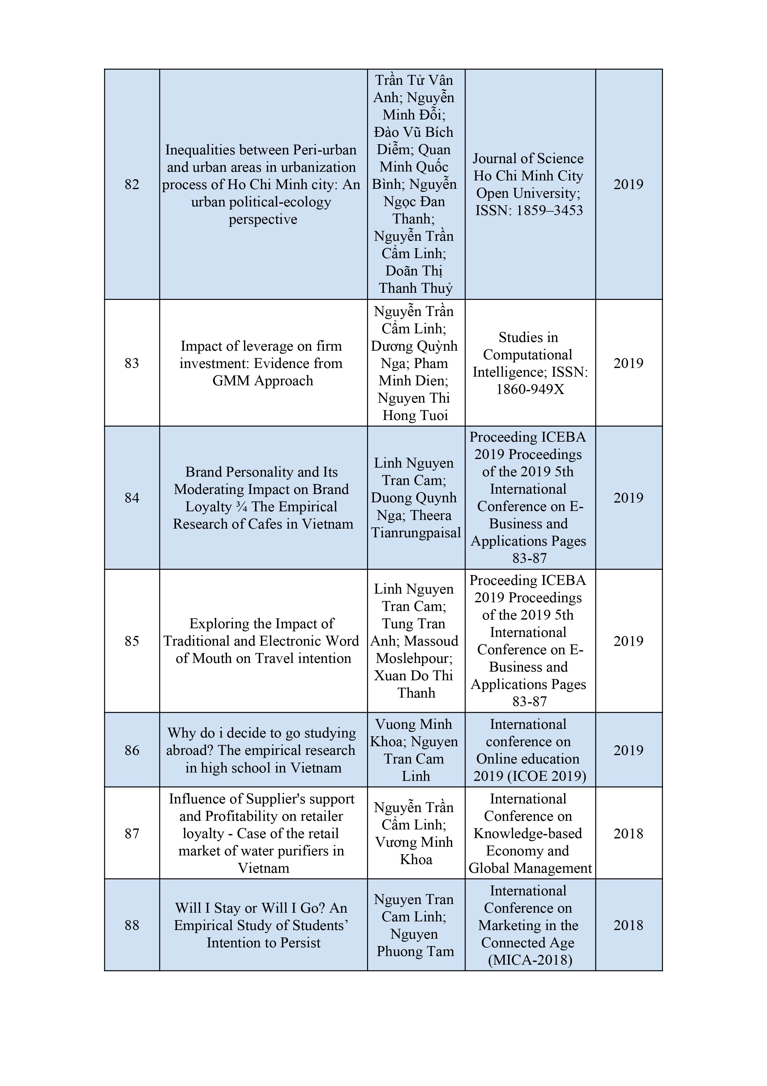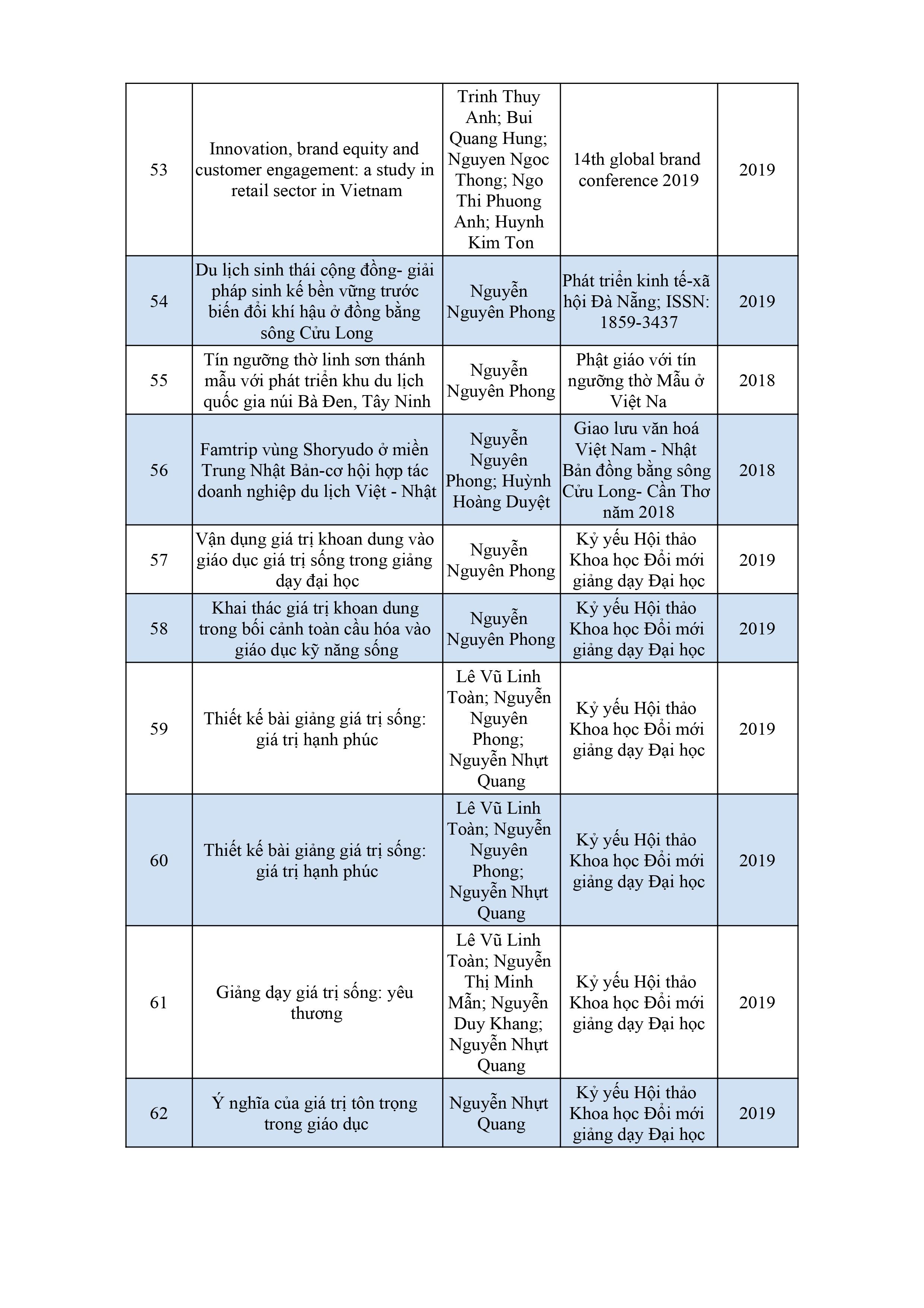 Danh sách các bài báo của Giảng viên khoa QTKD tại hội thảo Sustainable Tourism 2017