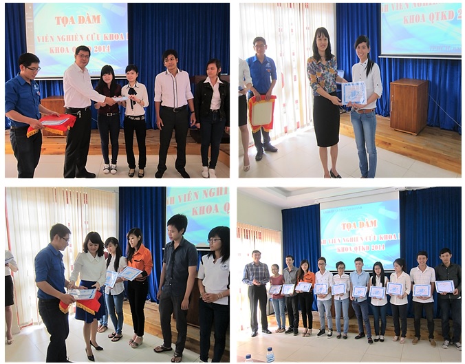 Một số hình ảnh sinh viên Khoa QTKD nhận phần thưởng và giấy chứng nhận giải thưởng cấp Khoa năm học 2013 – 2014.