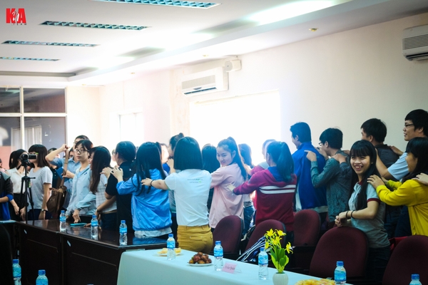 Mở đầu chương trình là phần hoạt náo vô cùng sôi động, các bạn sinh viên đã hâm nóng khán phòng bằng sự nhiệt huyết, năng động của mình. Không khí buổi hội nghị càng trở nên thân thiện, cởi mở hơn qua lời phát biểu hết sức gần gũi, ấn tượng của Cô Trịnh Thùy Anh.