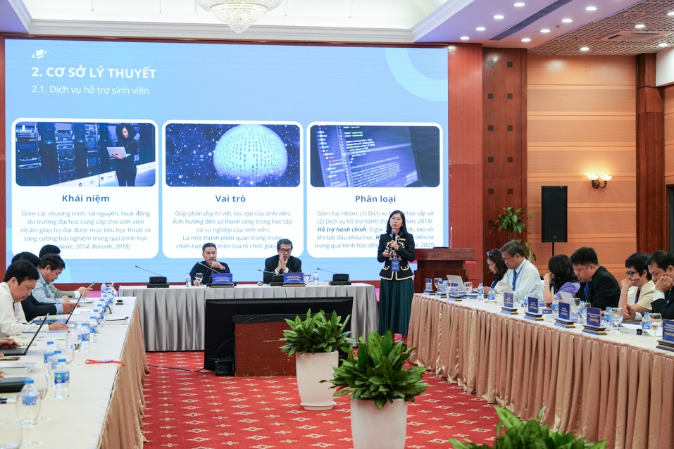 TS. Phan Thị Ngọc Thanh – Phó chủ tịch Hội đồng trường, Giám đốc Trung tâm Đào tạo Trực tuyến Trường Đại học Mở TP.HCM trình bày tham luận tại Hội thảo