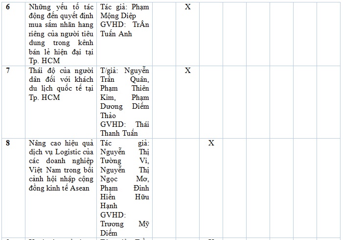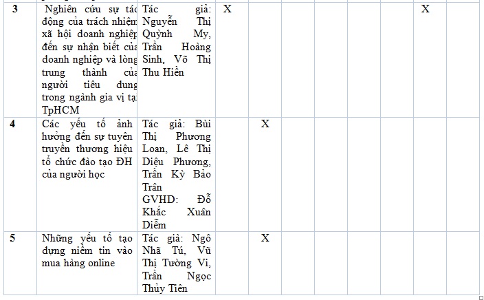 Danh sách đề tài nghiên cứu khoa học của sinh viên niên khóa 2014 - 2015