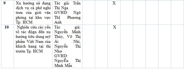 Kêt Quả Các Đề Tài Sinh Viên Nghiên Cứu Khoa Học Cấp Bộ