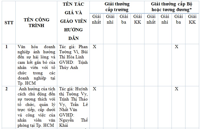 Năm 2022-2023 sinh viên Khoa Quản trị Kinh doanh có 20 đề tài đạt giải nghiên cứu khoa học cấp trường