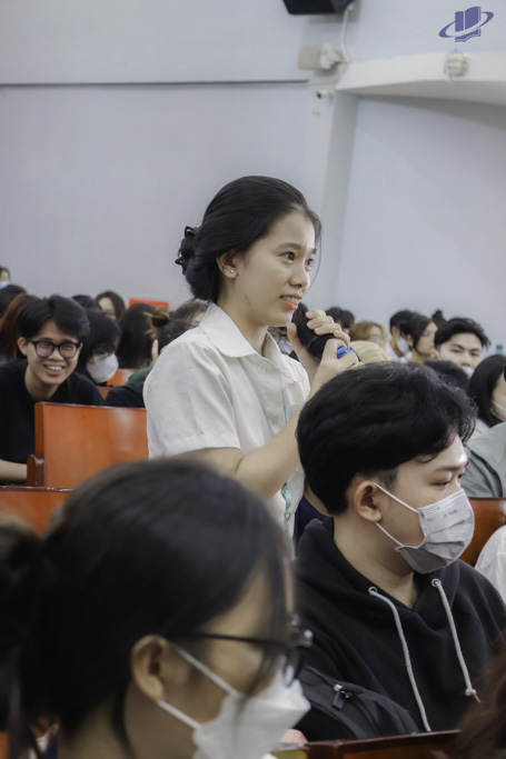 Sinh viên giao lưu đặt câu hỏi với khách mời