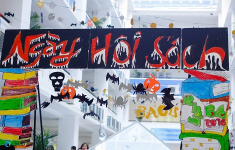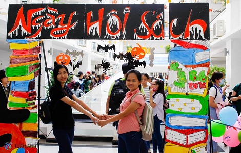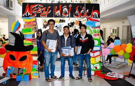 Các bạn sinh viên rất thích thú với phong cách trang trí của Ngày hội sách năm nay