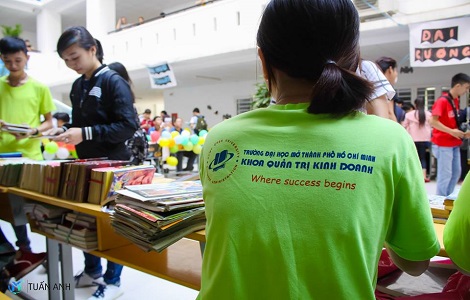 "Ngày hội sách" là hoạt động thường niên của Đoàn TNCS - Hội SV Khoa Quản trị kinh doanh. Năm nay, số lượng sách cũ quyên góp được lên đến 4000 đầu sách. Giá bán mỗi quyển sách chỉ từ 5000 - 10.000 đồng. Đây là cơ hội giúp cho các bạn sinh viên sở hữu những quyển sách hay với giá rẻ.