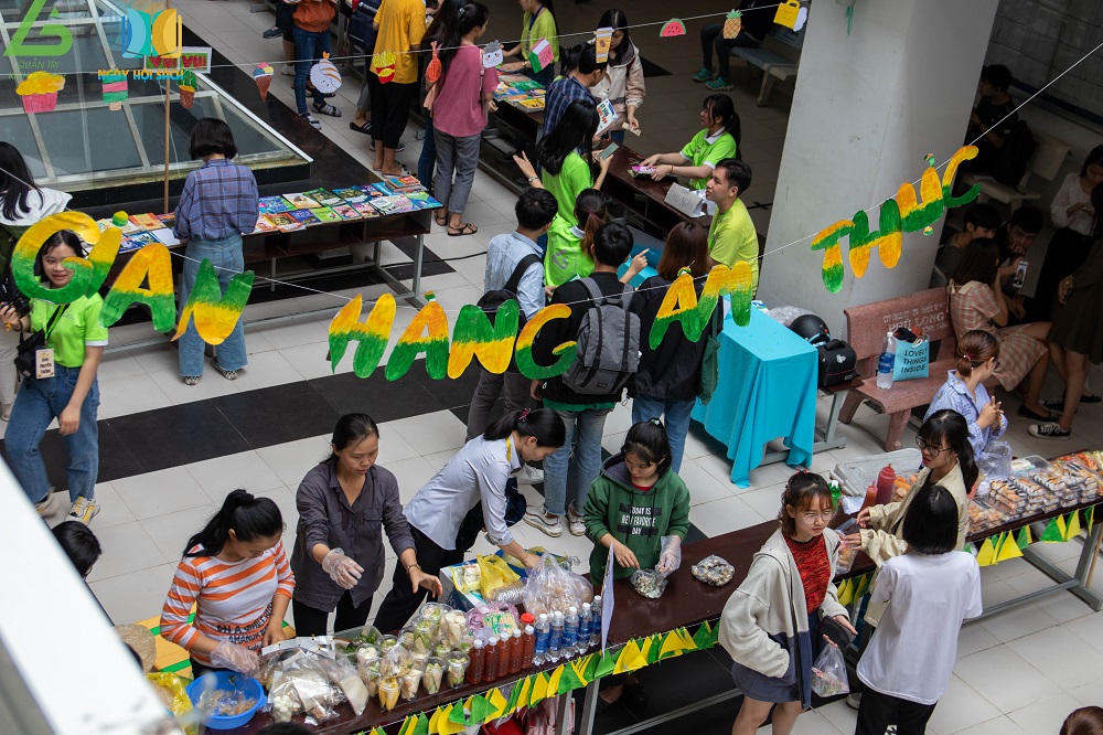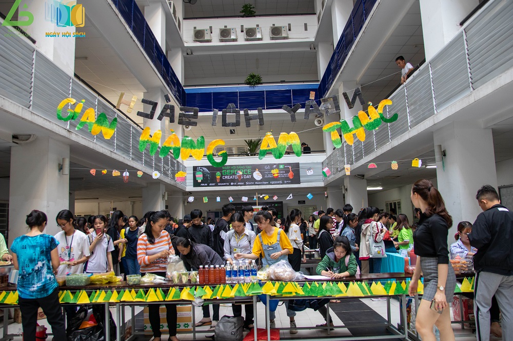 Ngoài gian hàng sách với những đầu sách hay với giá cả phải chăng thì bên cạnh đó còn có cả gian hàng ẩm thực và gian hàng trò chơi qua các giai đoạn của "THANH XUÂN". Chưa hết, khi tham gia và hoàn thành các trò chơi, sinh viên sẽ nhận được "GIẤY CHỨNG NHẬN THANH NIÊN KHỎE".