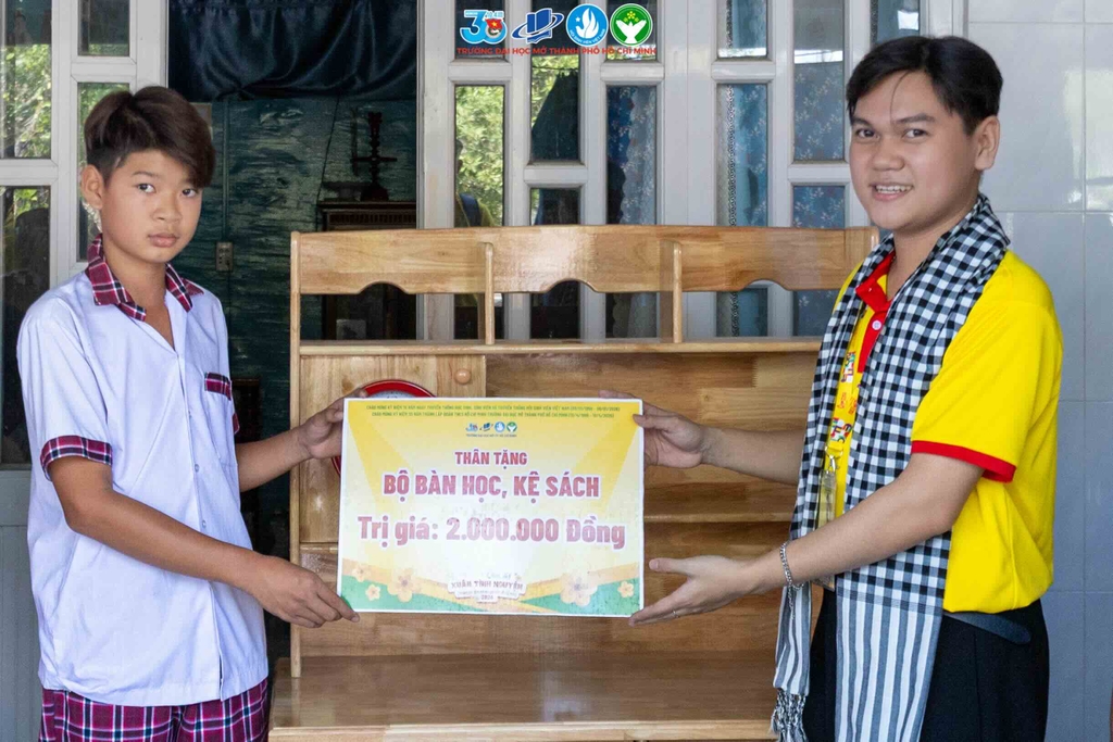 Trao tặng 10 bộ bàn học, kệ sách cho các em thiếu nhi tại xã đảo Thạnh An