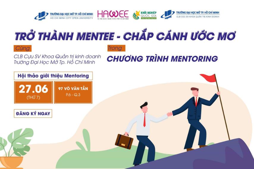 Có lúc nào bạn cảm thấy khó khăn, thấy nhiều điều mơ hồ trên con đường học tập và cuộc sống của mình? Có lúc nào bạn cảm thấy một mình và cần sự giúp đỡ, hay ít ra là một sự đồng hành, để được lắng nghe, để được thấu hiểu? Có lúc nào bạn cảm thấy cần một sự hỗ trợ từ một người có nhiều trải nghiệm cuộc sống và những mối quan hệ trong xã hội? Vậy thì hãy đến với Chương trình Mentoring của khoa Quản trị kinh doanh, Trường Đại học Mở Thành phố Hồ Chí Minh. Bạn sẽ được một cộng đồng doanh nhân đến từ Hội Nữ doanh nhân Thành phố Hồ Chí Minh (Hawee), Hội đồng Tư vấn Hỗ trợ Khởi nghiệp quốc gia phía Nam (NACES), Câu lạc bộ Cựu sinh viên khoa Quản trị kinh doanh (BAOU Alumni) hỗ trợ, đồng hành và chia sẻ.