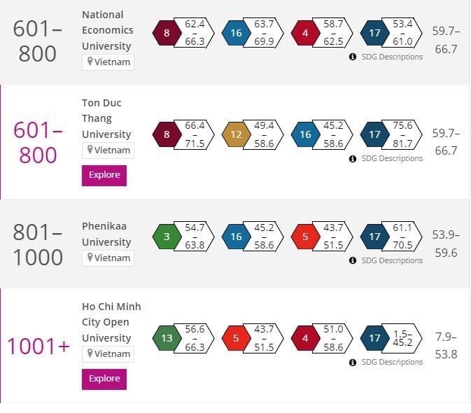 Trường Đại học Mở TP. Hồ Chí Minh là một trong 9 cơ sở giáo dục đại học có tầm ảnh hưởng (Impact Ranking) trên bảng xếp hạng của THE. Bảng xếp hạng này với tổng số 1.591 trường đại học từ 112 quốc gia, vùng lãnh thổ, chứng tỏ sự chất lượng và uy tín của Trường trong cộng đồng giáo dục quốc tế. Đặc biệt, năm nay, Trường Đại học Mở TP. Hồ Chí Minh còn là một trong những trường đại học Việt Nam đóng góp cho 17 mục tiêu phát triển bền vững của Liên Hợp Quốc (17 Sustainable Development Goals – SDGs) nổi bật ở Tiêu chí 13. Đây là một thành công đáng khen ngợi, cho thấy sự cam kết của trường trong việc đóng góp cho sự phát triển bền vững và xã hội, khẳng định vai trò quan trọng của nhà trường trong việc giải quyết vấn đề toàn cầu ở các mục tiêu như là: Xóa nạn đói, Bảo vệ khí hậu, Sức khỏe và cuộc sống tốt, Giáo dục có chất lượng, Hợp tác vì các mục tiêu phát triển, Giảm bất bình đẳng...